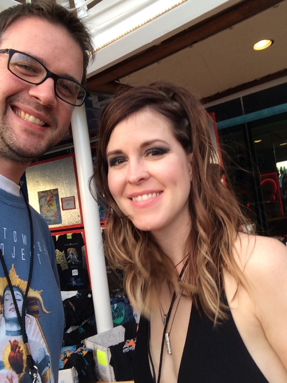 I also got to meet the lovely and talented Leslie Hunt, singer of District 97 (and American Idol finalist!). We talked a bit about the state of progressive rock in Chicago, and I promised her I’d catch their next show closeby. Forgive my double chin here. Leslie instructed me that I can get rid of that by angling the camera up. God bless you, Leslie. Hopefully my chins won’t make any more appearances for the next couple days.