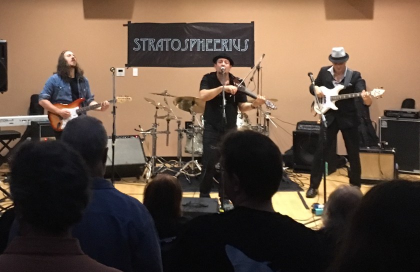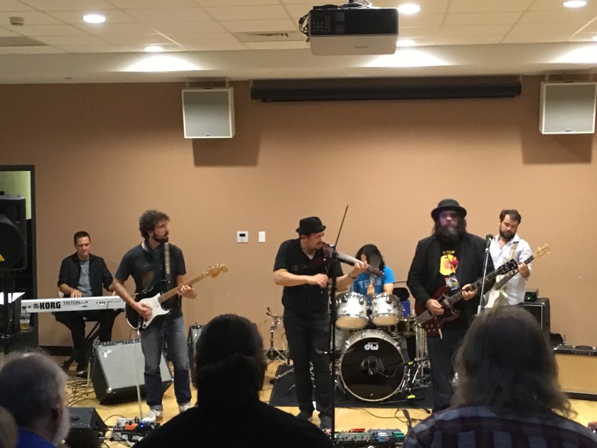 Fernando Perdomo closed the night with his Out to Sea band, a group that featured several of Fernando’s closest friends. Fernando’s Out to Sea album came out to much acclaim last year, and it was really fun to see and hear him play, as it always is. Paul Whitehead, who painted Fern’s album cover for Out to Sea, reproduced the cover during the concert. As Fern’s guest spot was a particular highlight from Joe’s set, Joe Deninzon’s guest spot in Fern’s set was also a highlight.