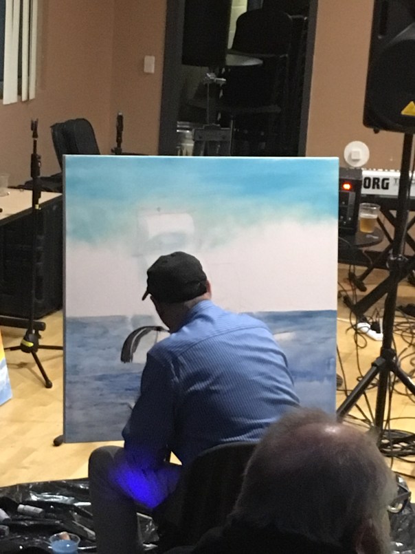 One neat feature of Saturday’s Late Night event was that artist Paul Whitehead, known for his art on numerous historical prog albums such as Trespass and Pawn Hearts, painted a few pictures during the set.