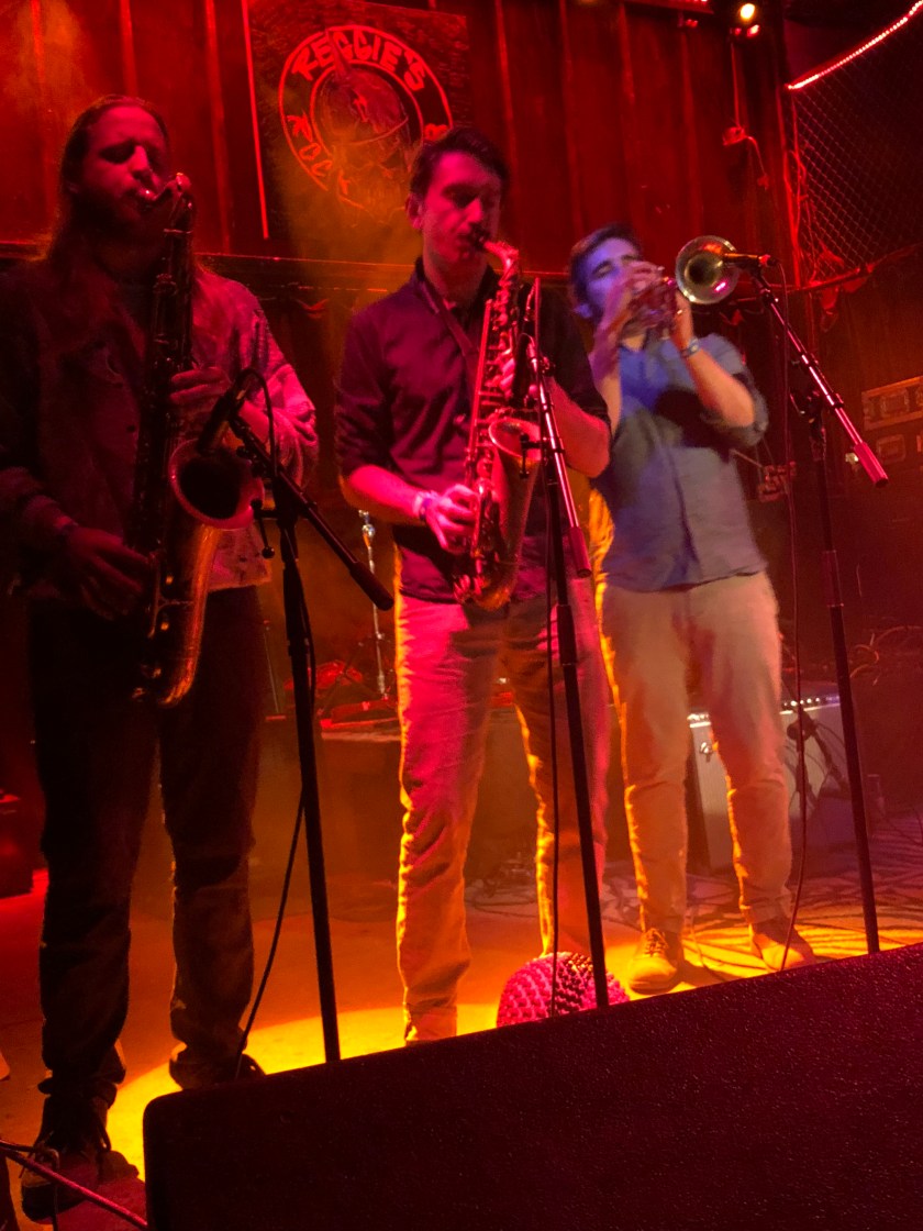 With a name like Gramps the Vamp, I expected something Halloween-ish. As I crossed the hallway over, I heard a loud Wurlitzer, which meant that my suspicions were warranted. Gramps the Vamp was a full ensemble, equipped with guitar, bass, drums, keyboards, a trumpet, and two saxophonists. Their music was spooky retro-horror, which was fitting, as their name was taken from a Scooby Doo villain. As bizarre as the premise is for this group, their music was really exciting and engaging, and highly orchestrated and technical. The brass instruments sounded particularly great.