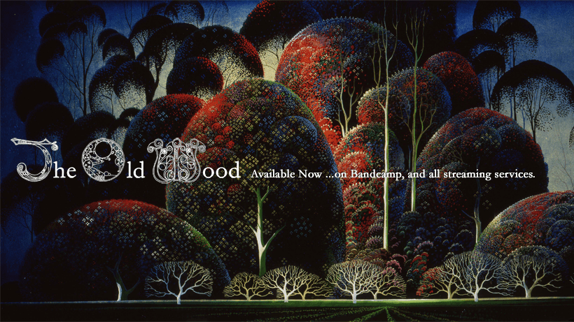Austin Meadows Wilkerson’s The Old Wood is a realized, magical world in which the listener can immerse themselves completely. The first thing one might notice is the cover art by the late Eyvind Earle (perhaps known for his famous backgrounds in Disney movies such as Sleeping Beauty), which depicts a mysterious, colorful forest scene, along with a title in gorgeously illuminated letters. Cover art can be either important or inconsequential, and I feel that The Old Wood is a perfect example of how carefully and thoughtfully selected album art can perfectly compliment a listening experience.